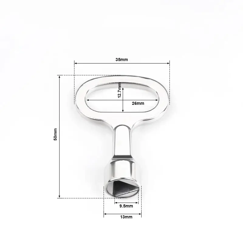 Το Yitai Lock είναι προμηθευτής πλήκτρων τριγώνου αλουμινίου και διασφαλίζουμε ότι η ποιότητα των προϊόντων μας είναι πάντα συνεπής. Αυτά τα κλειδιά διαθέτουν ανώτερη αντίσταση στη διάβρωση, καθιστώντας τα κατάλληλα για γενικά εμπορικά περιβάλλοντα. Η επιχρυσωμένη επιφάνεια του νικελίου παρέχει ένα φωτεινό λευκό φινίρισμα, καθιστώντας το ιδανικό για καθημερινή χρήση.