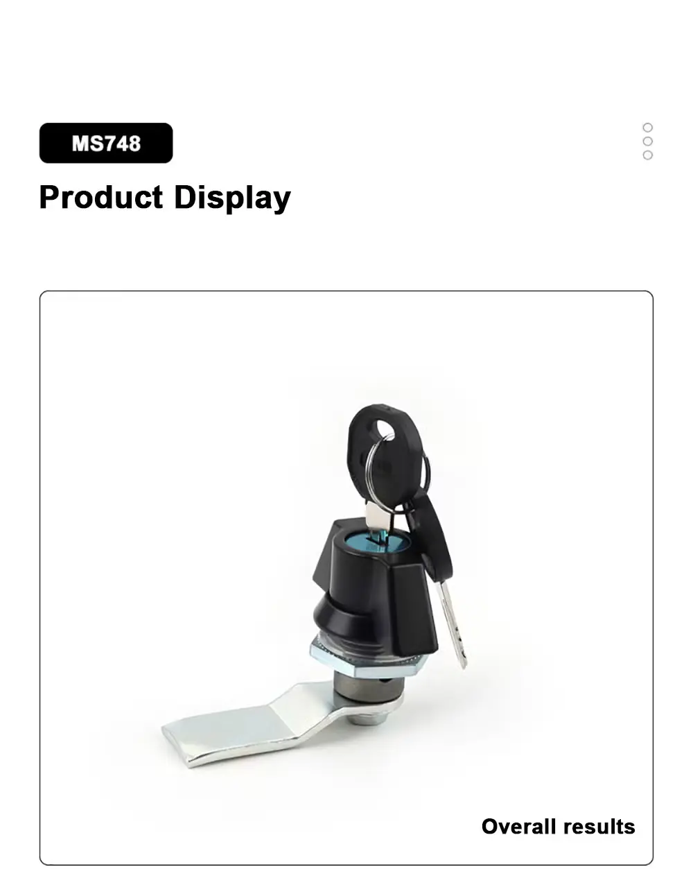 Το ύψος του κυλινδρικού σώματος κλειδώματος είναι 38,5mm και η προεπιλεγμένη καρτέλα κλειδώματος είναι ύψος 5mm. Η γωνία περιστροφής είναι 90 °. Αυτό το μοντέλο είναι ένα κλειδωμένο κλειδί με έναν κύλινδρο κλειδώματος πλακιδίων.