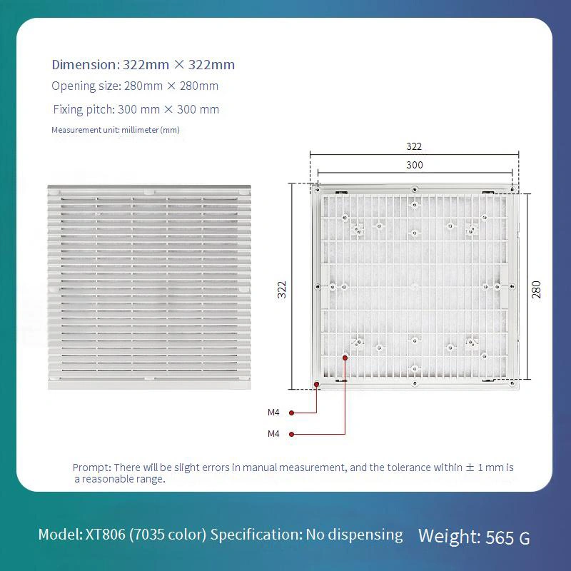 Η εγκατάσταση απαιτεί μόνο τον καθαρισμό της επιφάνειας τοποθέτησης, την ευθυγράμμιση του κάλυμμα της σκόνης και την πίεση της στη θέση του. Συνιστάται να διεξάγονται τριμηνιαίες επιθεωρήσεις για συσσώρευση σκόνης χρησιμοποιώντας ηλεκτρική σκούπα ή συμπιεσμένο αέρα για καθαρισμό. Αντικαταστήστε αμέσως όταν η αποτελεσματικότητα του εξαερισμού μειώνεται αισθητά ή προκύπτουν ζημιές για να διατηρηθεί η αποτελεσματικότητα της προστασίας.