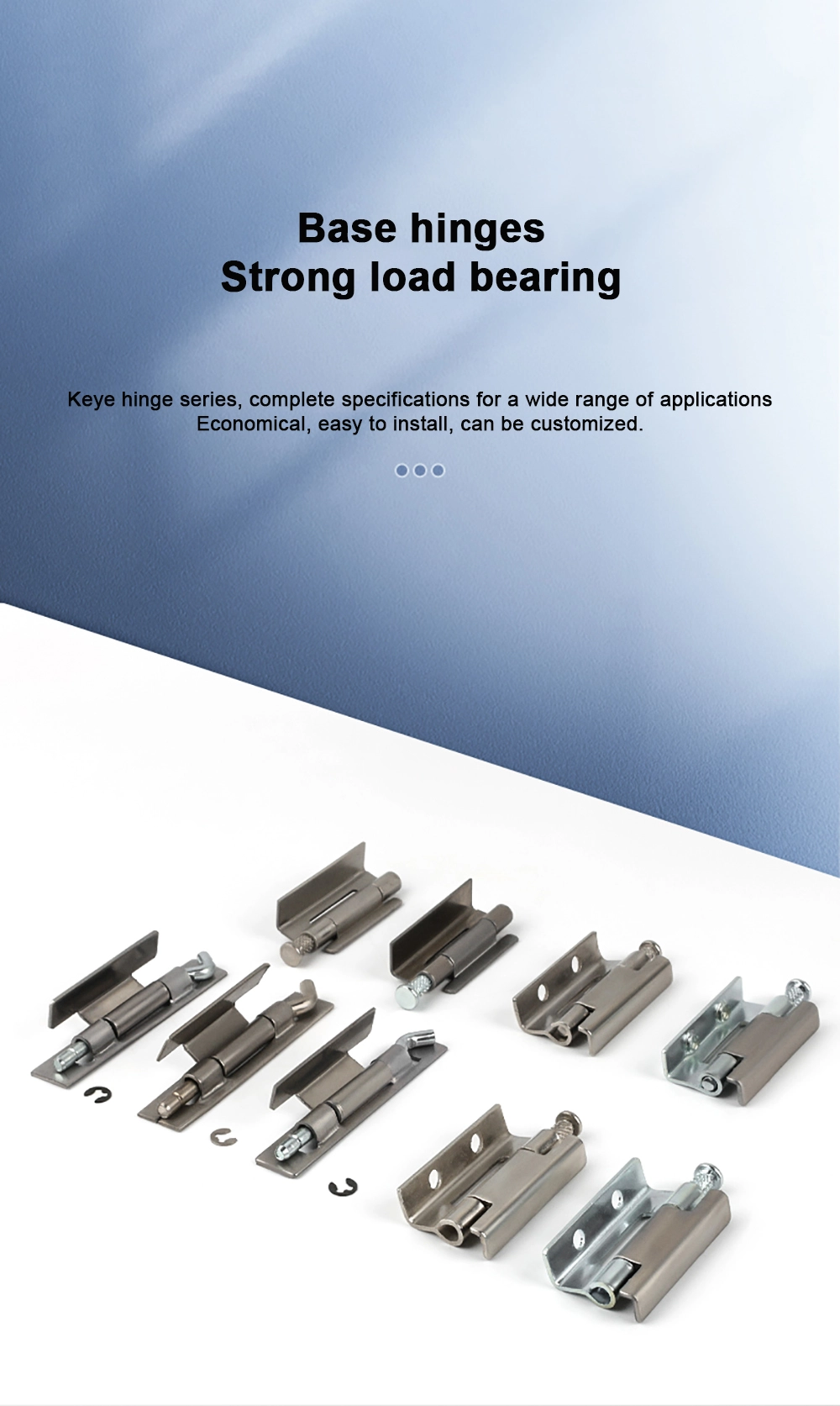 Αυτή η σειρά αφαιρούμενων μεντεσέδων προσφέρει τόσο επιλογές από κράμα ψευδαργύρου όσο και από ανοξείδωτο χάλυβα. Η έκδοση κράματος ψευδαργύρου περιλαμβάνει τρία επιφανειακά φινιρίσματα: μαύρο, φωτεινό λευκό φωτεινό χρώμιο και ματ, ενώ η έκδοση από ανοξείδωτο χάλυβα υιοθετεί μια βουρτσισμένη διαδικασία, η οποία είναι πιο κατάλληλη για βιομηχανικά σενάρια. Η έκδοση από ανοξείδωτο χάλυβα είναι βουρτσισμένη, η οποία είναι πιο κατάλληλη για βιομηχανικές σκηνές. Η έκδοση από ανοξείδωτο χάλυβα είναι προσαρμόσιμη σε διάφορα περιβάλλοντα όπως η υγρασία, το οξύ και το αλκαλικό.