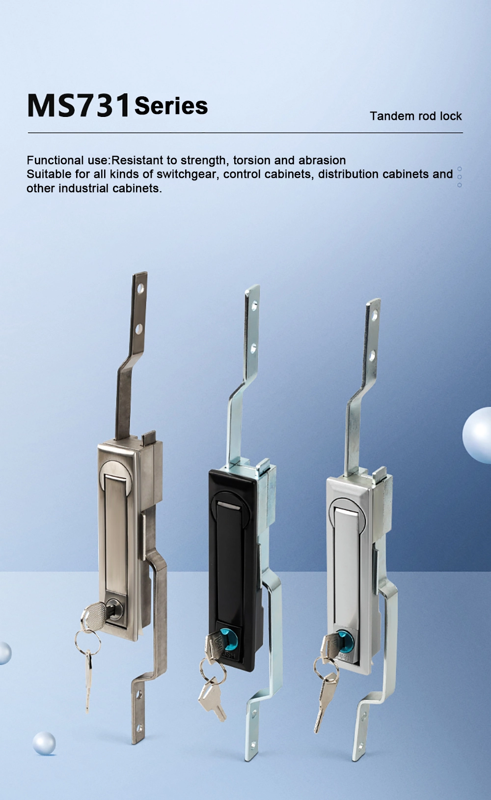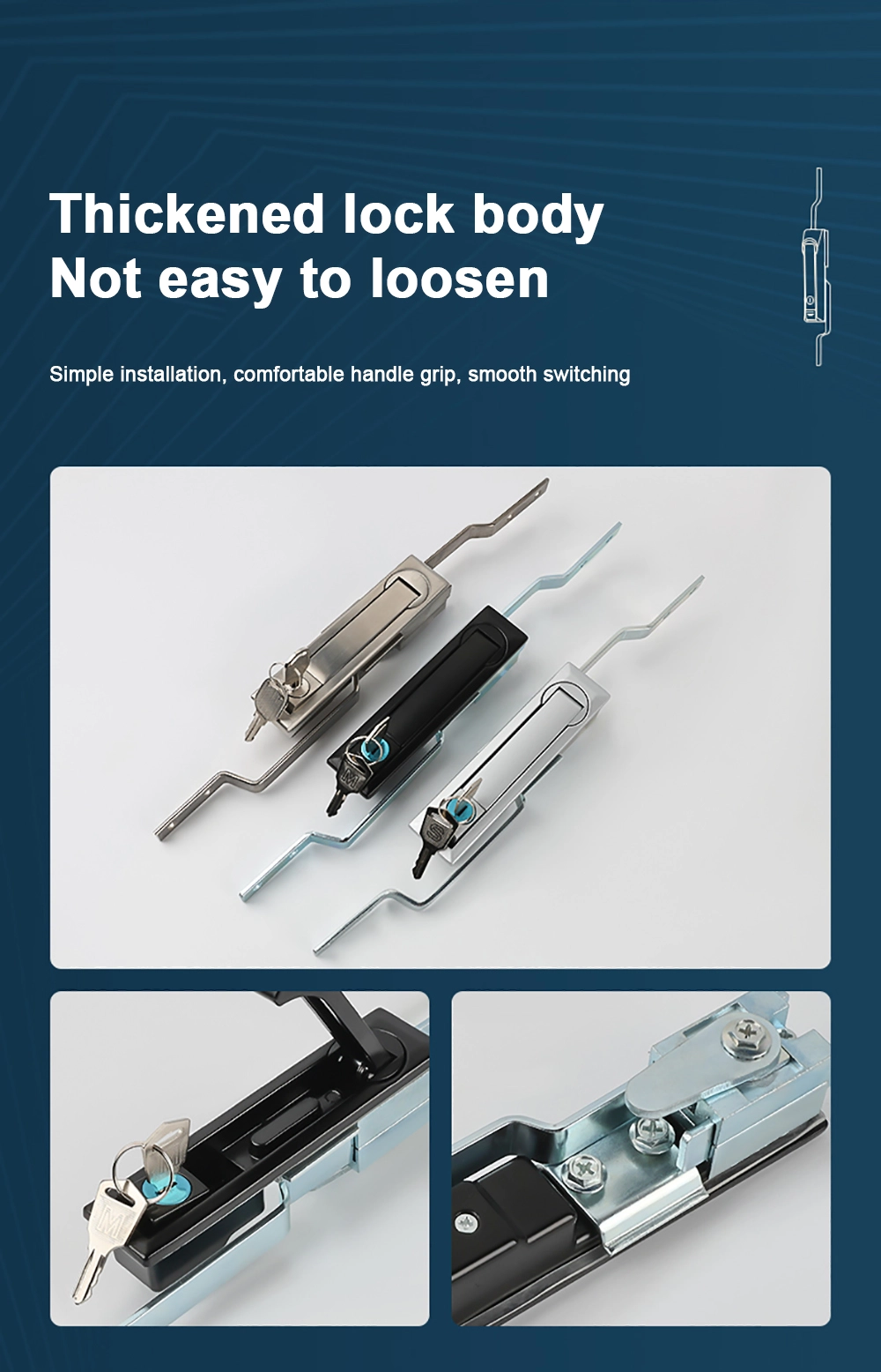 Κατάλληλο για ντουλάπια, σταθμούς βάσης επικοινωνίας κ.λπ. Οι κλειδαριές από ανοξείδωτο χάλυβα είναι ανθεκτικές, ανθεκτικές σε σκόνη και αδιάβροχα.
